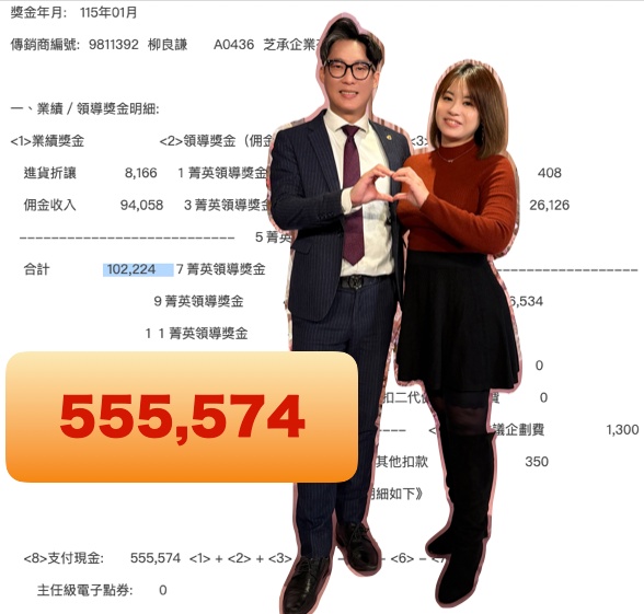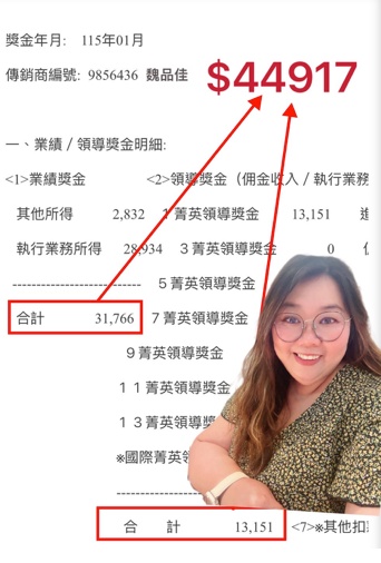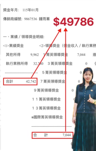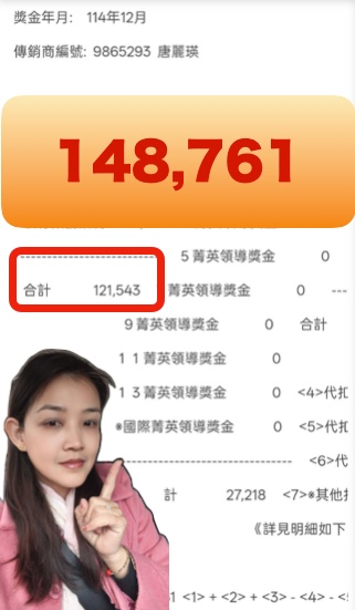 前三個月是建組織期,專注複製團隊。第四個月起組織達標,獎金開始每月穩定入帳,並持續倍增。